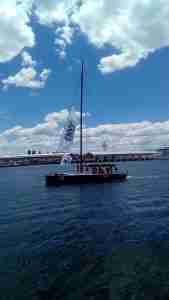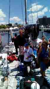 Envy Scooters Sailing Team crossing the finishing line in Hobart, image thanks to one of our Volunteers, Don, who is down spectating.